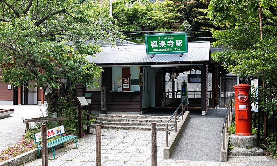 | Get off at Enoshima Electric Railway "Gokurakuji Station." After exiting the ticket gate, head right (south) along the street. |