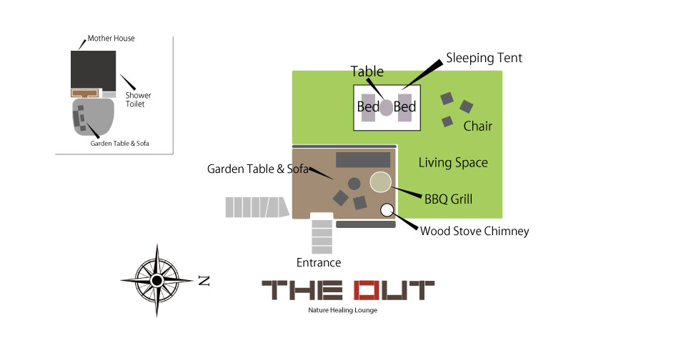 You can enjoy authentic private camping here in "Bamboo&Fire Camp". Because there is a dedicated chimney here, you can enjoy a fire camp all year around. There is also an electric outlet, so you can use the electric appliance as usual. Nearby is a Bamboo grove. Enjoy walking around the Bamboo Forest just for you. You can also experience harvesting bamboo shoots depends on season(around April). Feel free to bring in the ingredients here and enjoy BBQ and hot pot dishes. In the main house, bath, sauna and toilets are also provided, so that ladies can also use it with confidence.