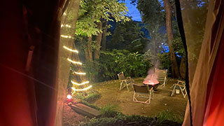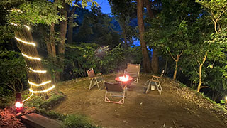 山の東側に位置する【キャンプサイトNo,2】は、空気の澄んだ高台にあります。鎌倉極楽寺エリアの街並みを見渡すことができます。江ノ電が走るのも垣間見れます。江ノ電が走るカタコト音が聞こえます。踏切がチンチン鳴っているのも聞こえてきます。古き良き鎌倉テイストを味わうことができます。ひな壇になっていますので、どこにテントを張って、どこをリビングスペースにするかはセンス次第です。大木に抱かれながら焚き火を楽しむことができます。日ごろのストレスがいつの間にか吹っ飛んでしまうような感覚になります。朝日がすがすがしくて深呼吸をしたくなる場所です。ここに滞在するだけで心身ともに浄化され、すがすがしい気分になれるはずです。独立した場所に位置していますので、他の人がキャンプサイト内に立ち入る心配もありません。マザーハウスのバス、サウナ、トイレも便利に利用できますから、女性にも安心できるスペースです。