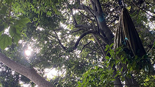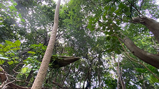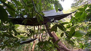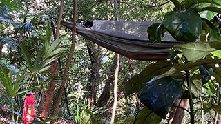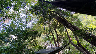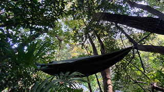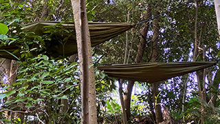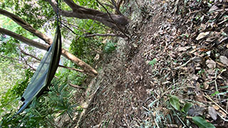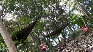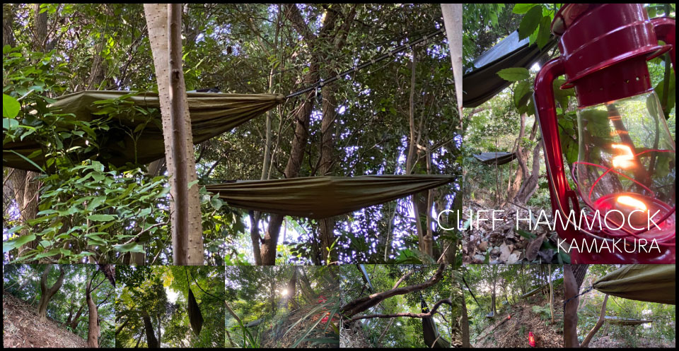 【クリフハンモック・木漏れ日に埋もれてゆらゆらキャンプ】 ・斜面にハンモックステイはちょっとスリリングな醍醐味。 ・木漏れ日に埋もれて自然と一体になる感覚は唯一無二の魅力。 ・もちろんBBQや焚火もOK。