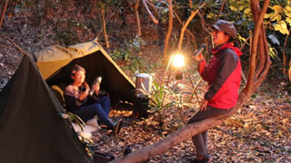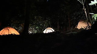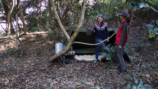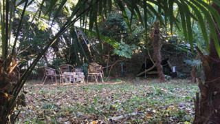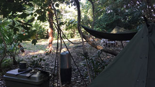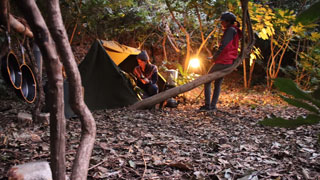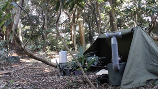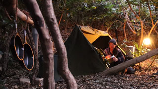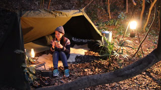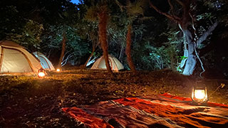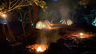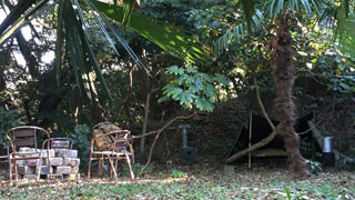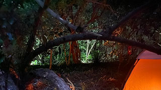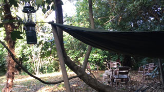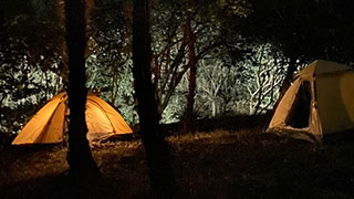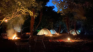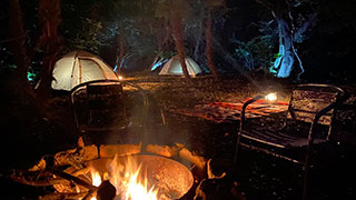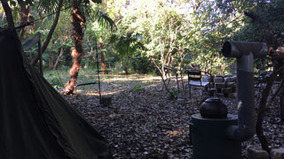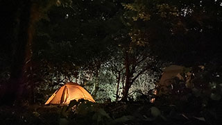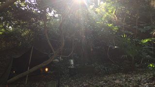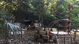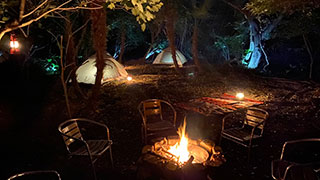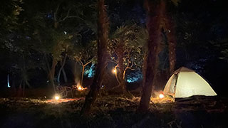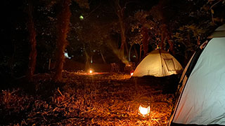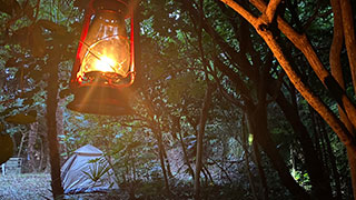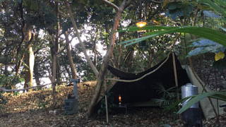 【キャンプサイトNo,7】は、本格的なワイルドキャンプがお楽しみいただけます。山の頂上付近にありますので、夜には頭上に星が瞬きます。森に囲まれて暗いので真上の星空がとっても近くに感じられます。夜空を独り占めした気分が味わえます。木々の隙間からきらめく海も望めます。専用の焚火スペースがありますので、焚き火を仲間で囲んでまったり過ごすことができます。ダッチオーブンを使ったアウトドア料理もお楽しみください。360度木々に囲まれたこの場所は、民家を気にすることもなく、自然の中に溶け込めます。ハイキングコースにもつながっていますので、ちょっとしたトレッキングや山歩きなども、お楽しみいただけます。マザーハウスへのアクセスは、ランタンで森の中を数分歩くこことになります。電気が必要な場合にはバッテリーをご用意ください。こちらのキャンプサイトは、テレビやメディアの撮影場所として一番人気のある場所です。